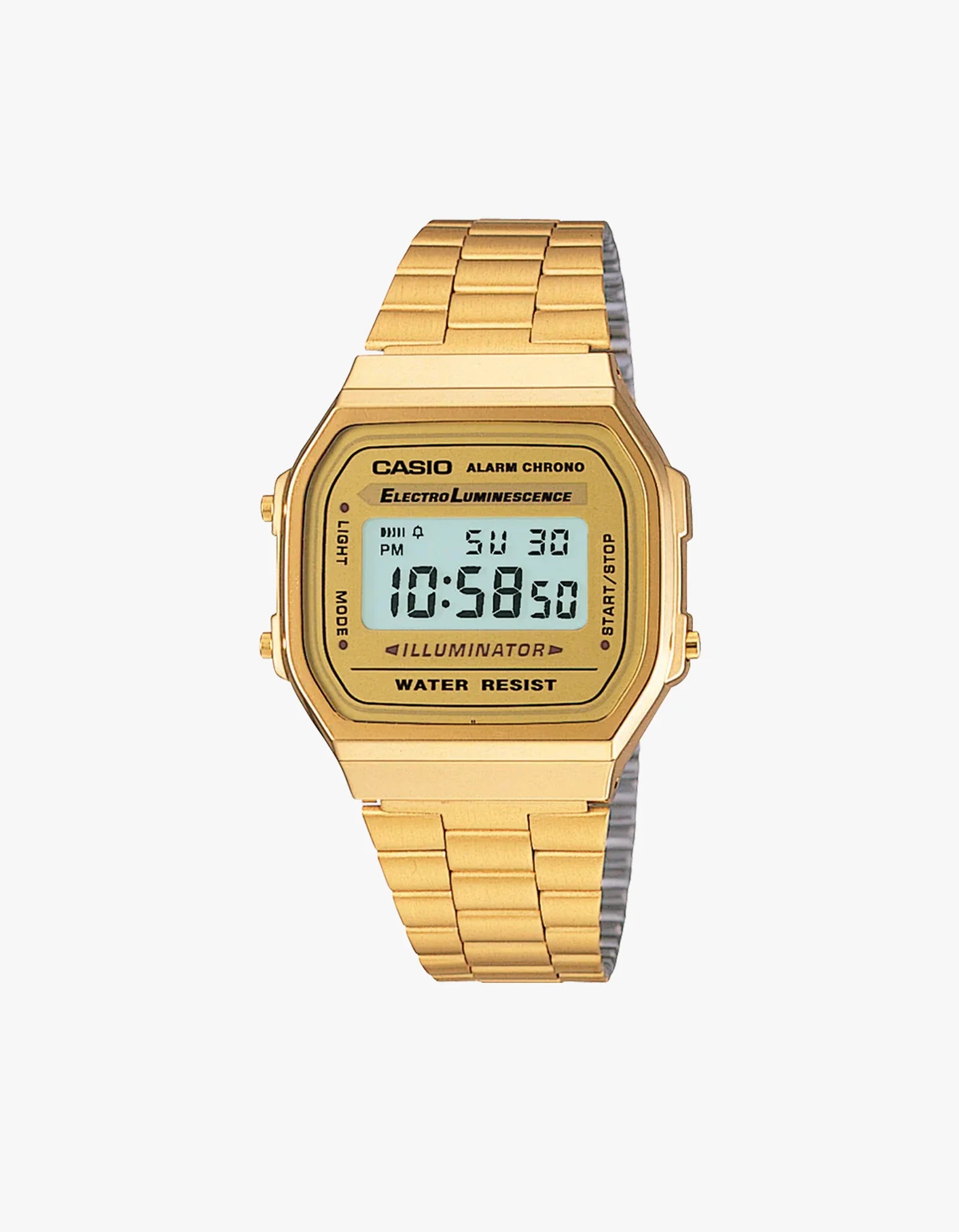 The perfect fusion of retro aesthetics and modern features. Gold-tone elegance meets digital precision in a watch that's built for life.